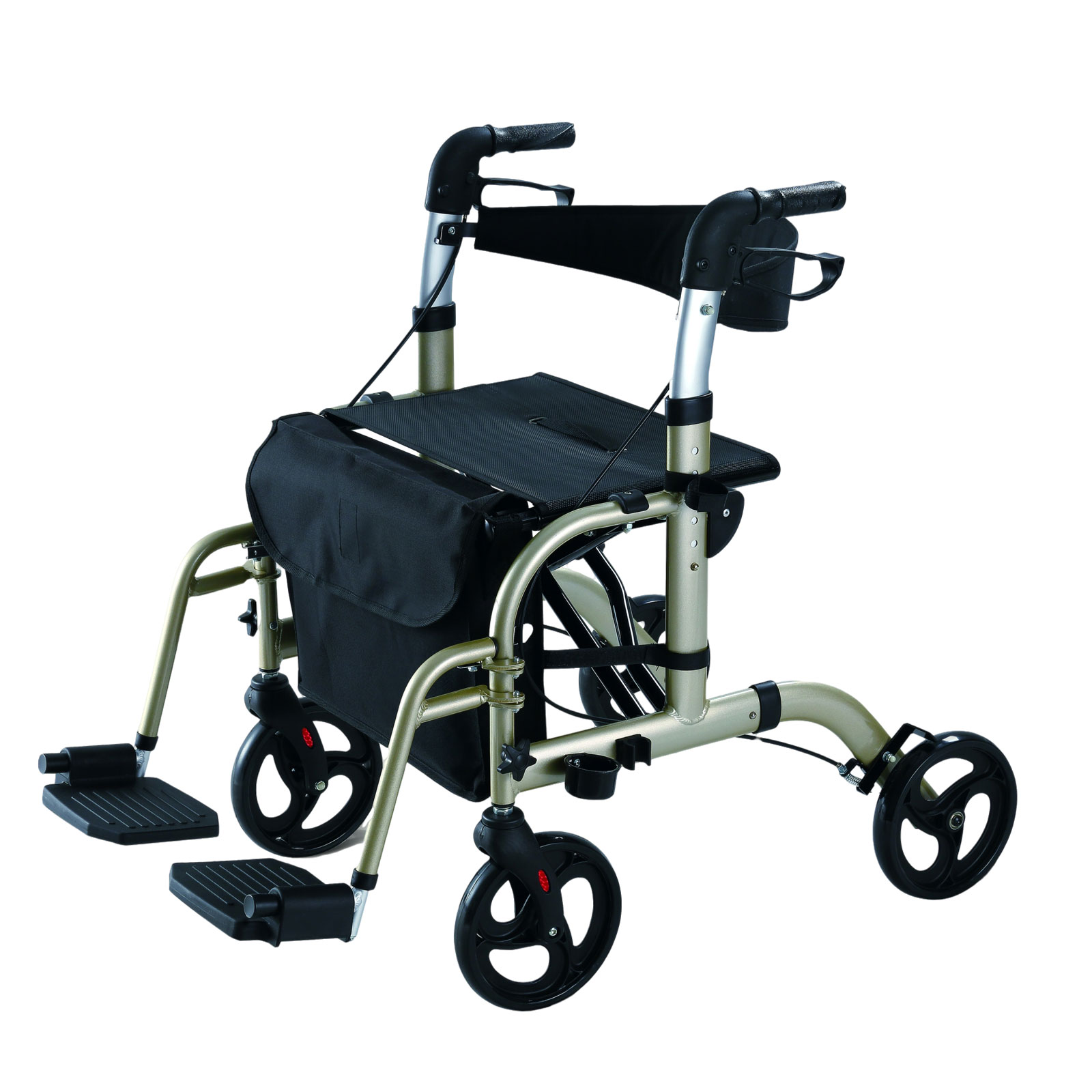 This Alum Rollator is a versatile mobility solution perfect for corporate procurement customers. This rollator offers a convenient 2-in-1 function, easily converting into a wheelchair when needed. Its sleek design features liquid painting for a stylish finish. Equipped with 8″ PVC wheels and removable front/rear wheels, it ensures smooth and effortless maneuverability. The rollator also includes removable shopping bags and an adjustable handle height in 6 increments for added convenience.